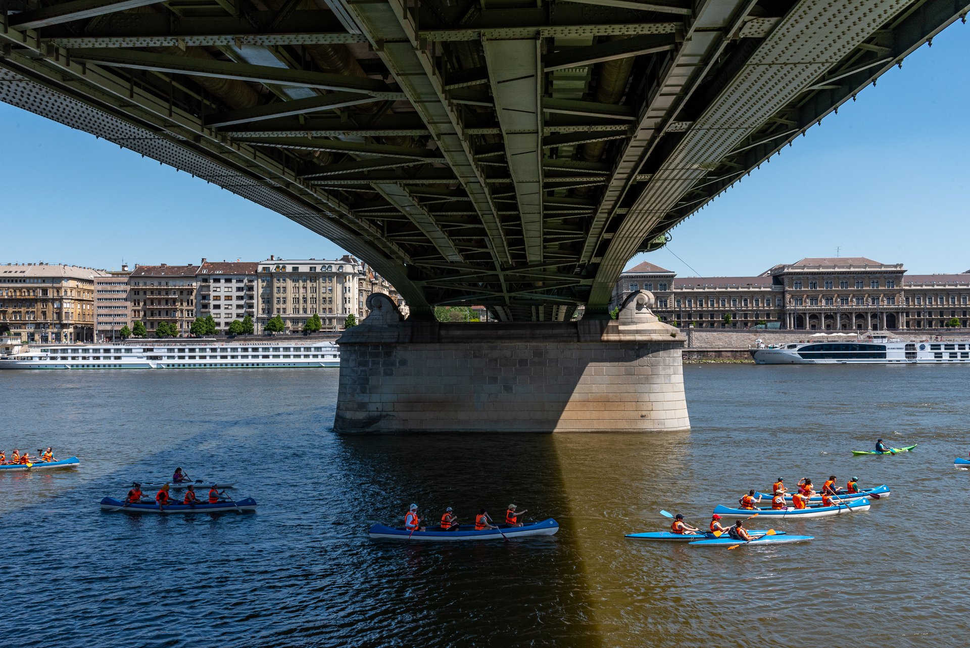 A nap és a gyülekezés a Római-parton kezdődött, hogy aztán együtt tegyük meg a majd’ két órás különleges kirándulást a Dunán. A legtöbben kenuval vágtak neki a mintegy 15 kilométeres távanak, de természetesen voltak kajakok, párevezős hajók és néhány SUP is. A részvevőket hihetetlen panoráma és természetközeli élmény fogadta, a város pedig a vízről nézve teljesen új arcát mutatta mindenkinek.