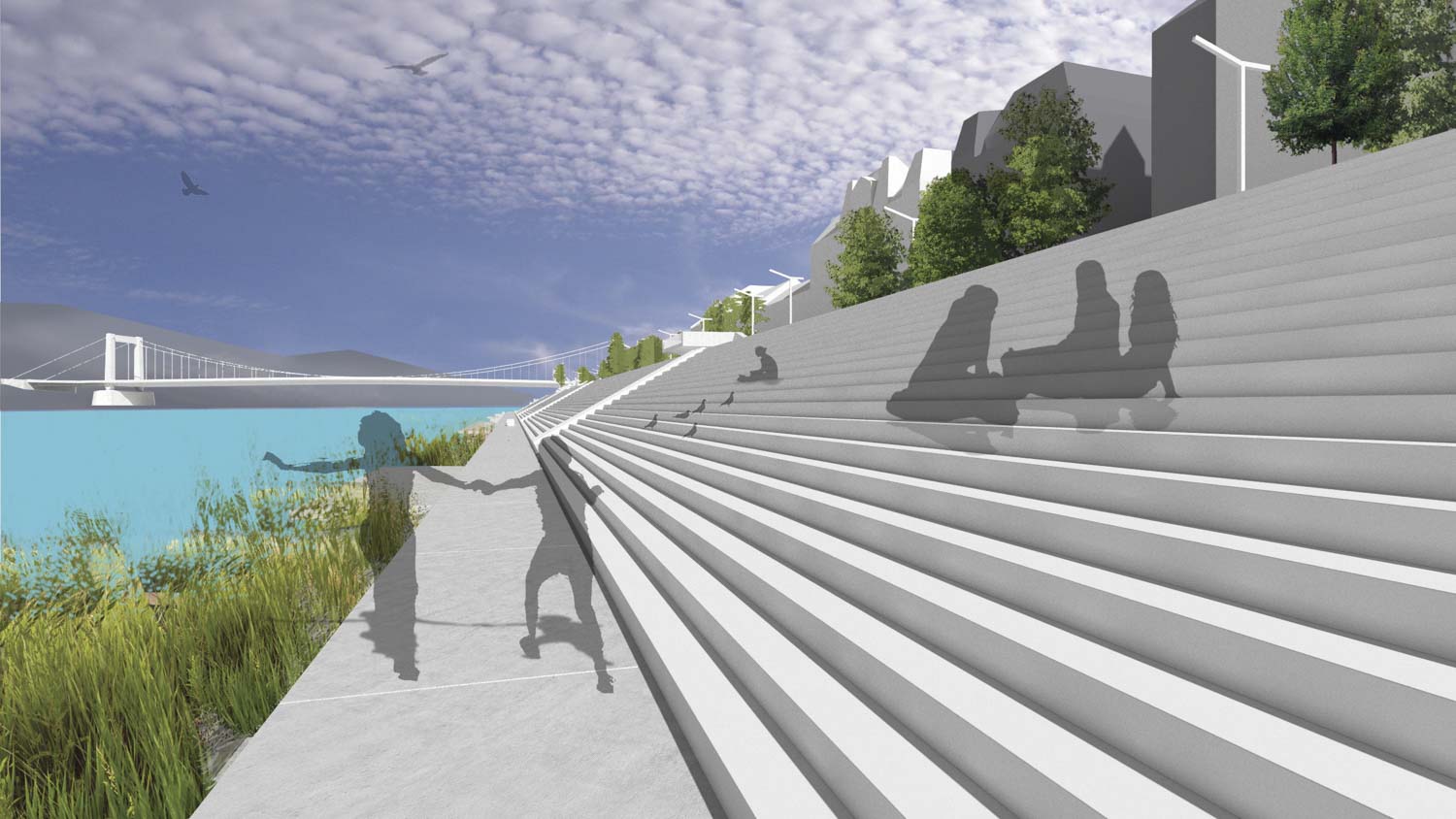 Flood-tolerant public space along the Danube andthe river can be touched by hand