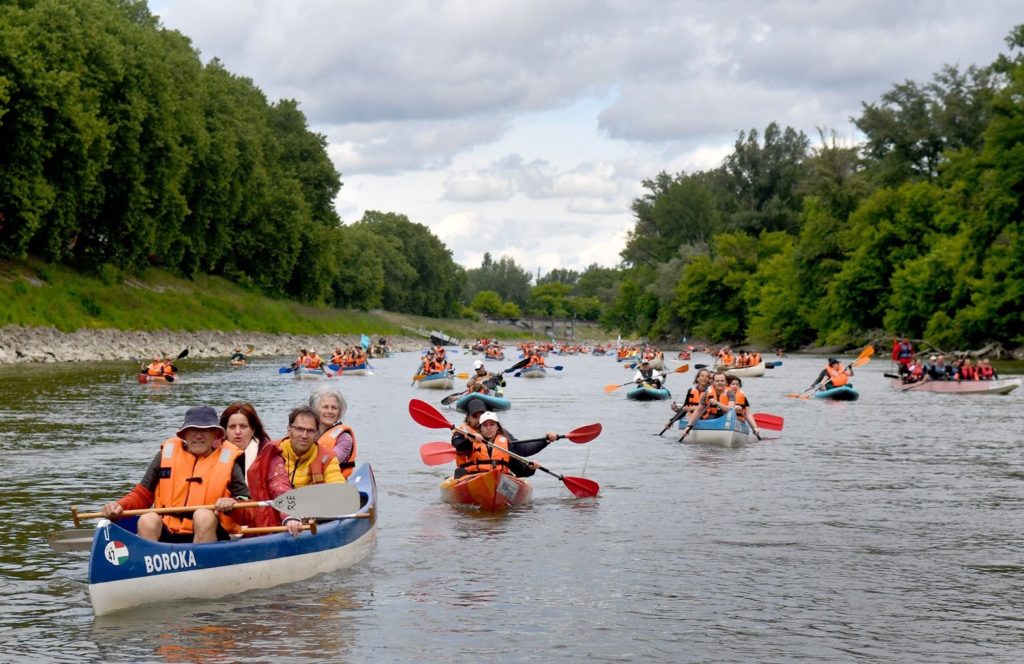 Idén negyedik alkalommal rendeztük meg a Budapest Átevezést, ahol közel háromszázan, 70 hajóval eveztünk le közösen a Római partról a Hengermalomhoz. Idén először sárkányhajókkal is csatlakozhattak a résztvevők, így a kenukkal, kajakokkal, evezős hajókkal és SUP-okkal együtt a szabadidős evezés szinte minden hajótípusa képviseltette magát a közös „vízitúrán”.